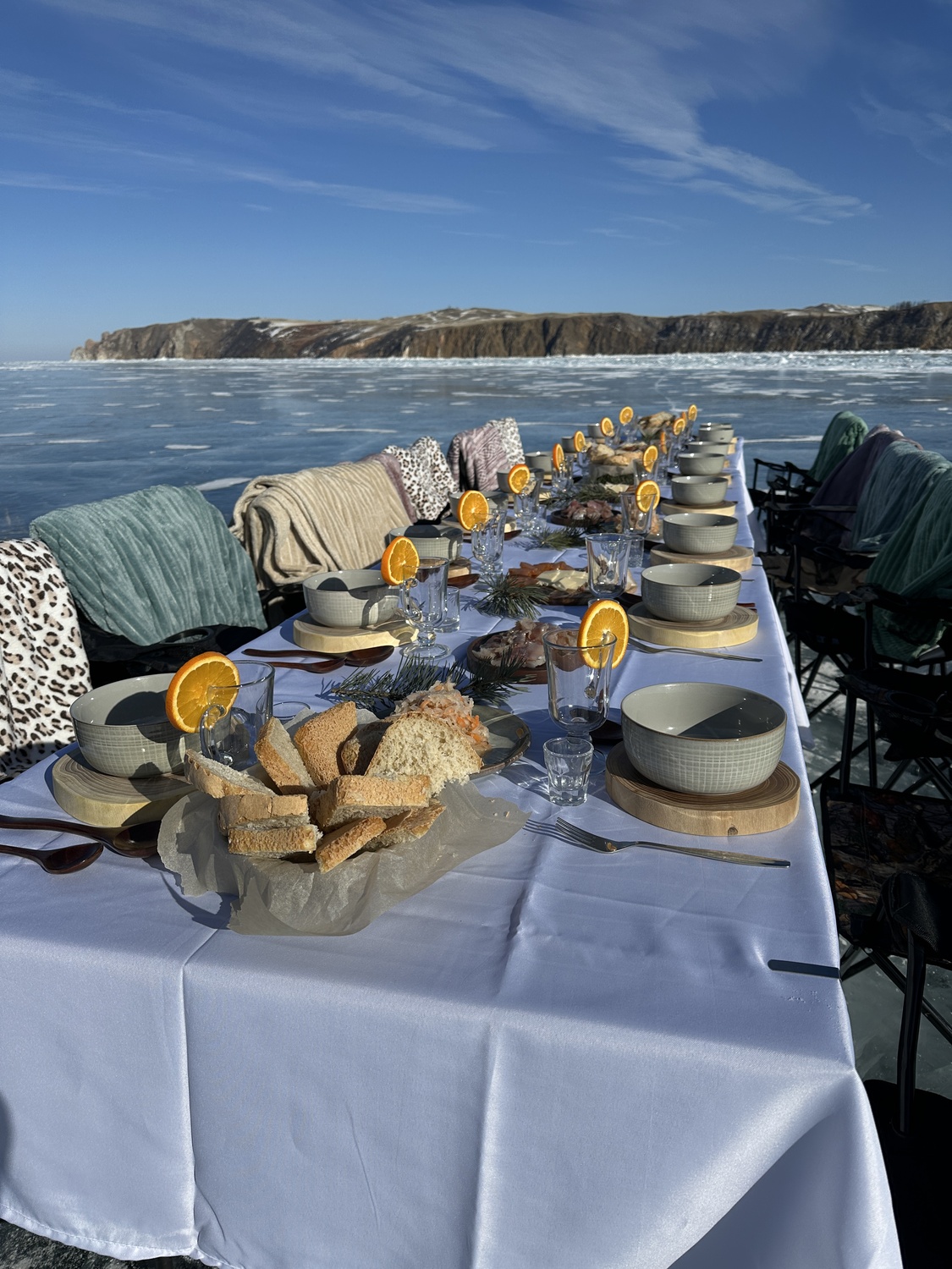 9:45 отправляемся на экскурсию к мысу Хобой (по дороге посмотрим ледяные наплески, знаменитую пещеру под мысом Хобой, мыс Три Брата, посмотрим на лёд с мыса Будун, а также отведаете коктейль «Поцелуй Байкала»)
